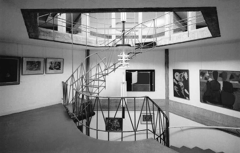 Interior do Museo Carlos Maside, en Sada (A Coruña), coa escaleira, varandas e lámpada