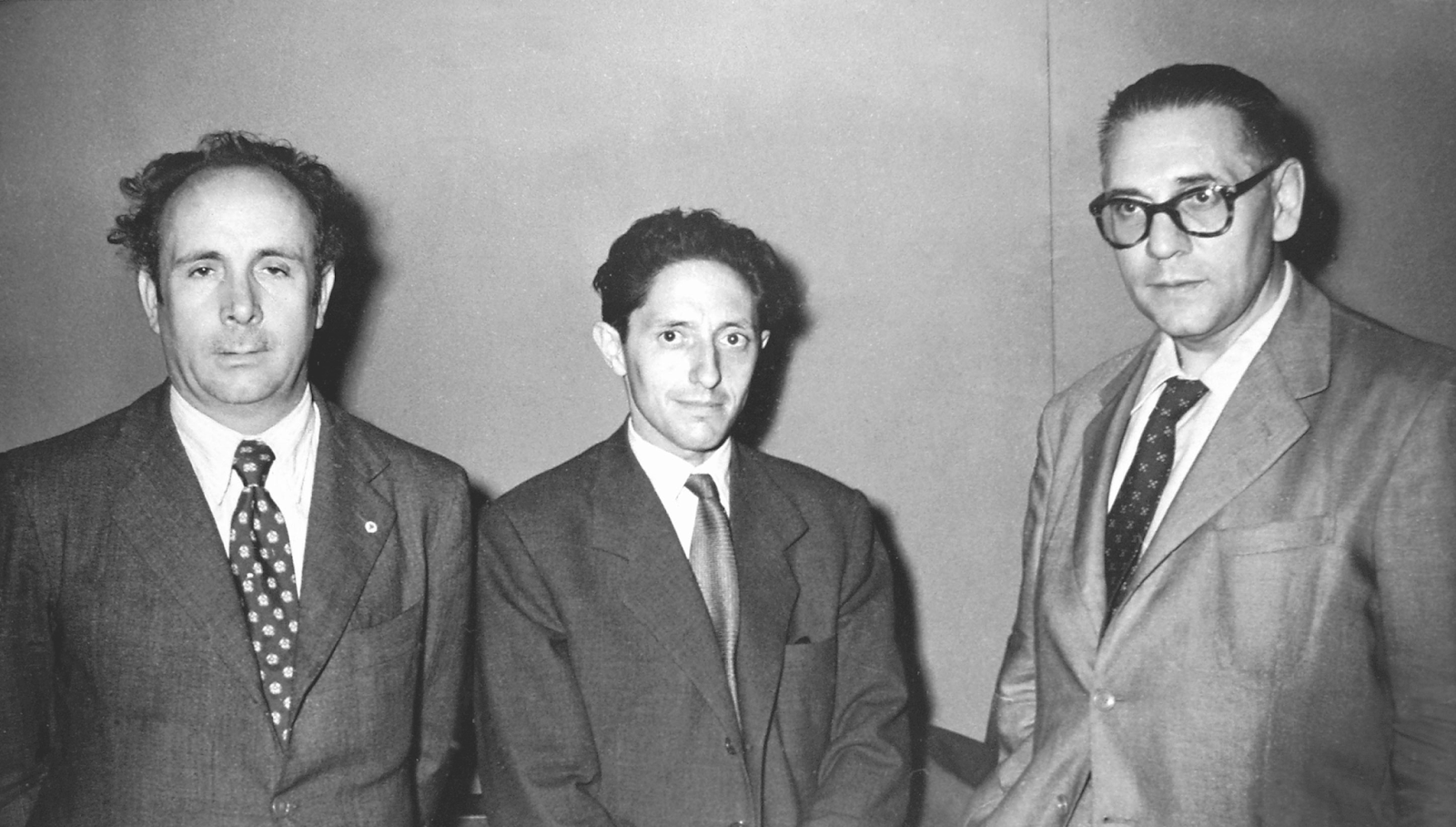 | Seoane e Isaac reencontráronse en Bos Aires en 1955. Na fotografía, tomada a finais dese ano, están acompañados polo pintor Laxeiro Cedida polo autor |