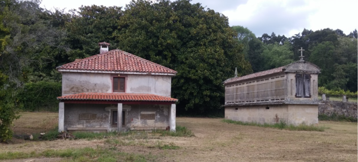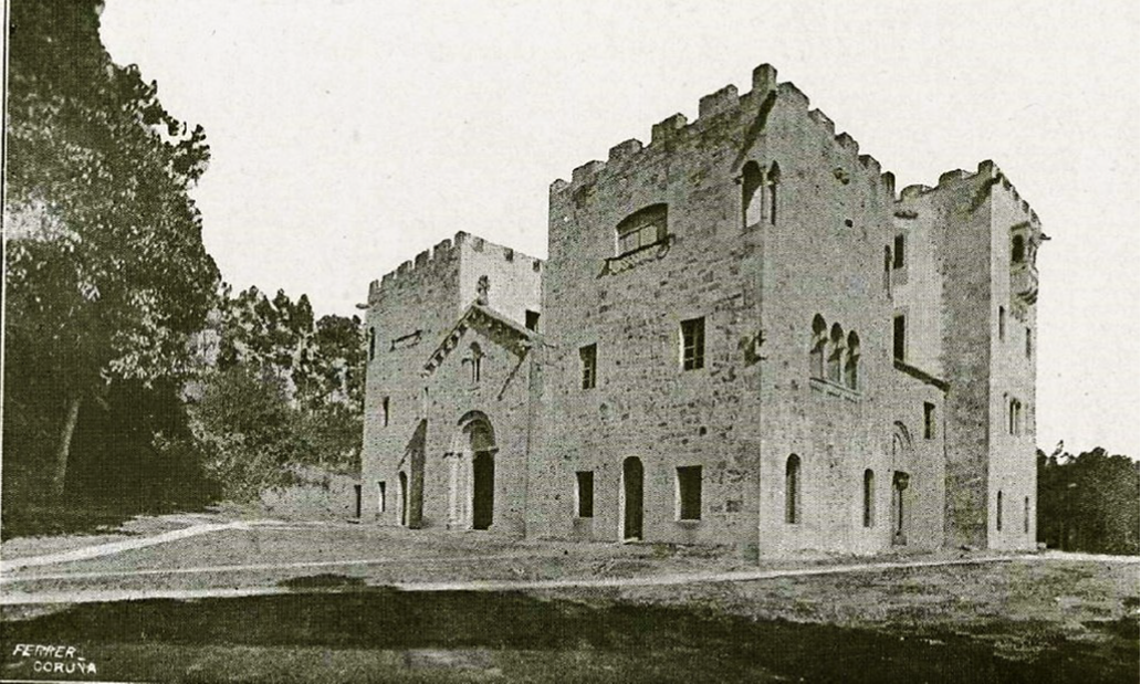 A Granxa de Meirás, fortaleza do s. XIV reconvertida en casa de veraneo. Durante a ditadura foi rehabilitada polo Estado, empregándose como edificio de servizo da residencia oficial do Xefe do Estado |