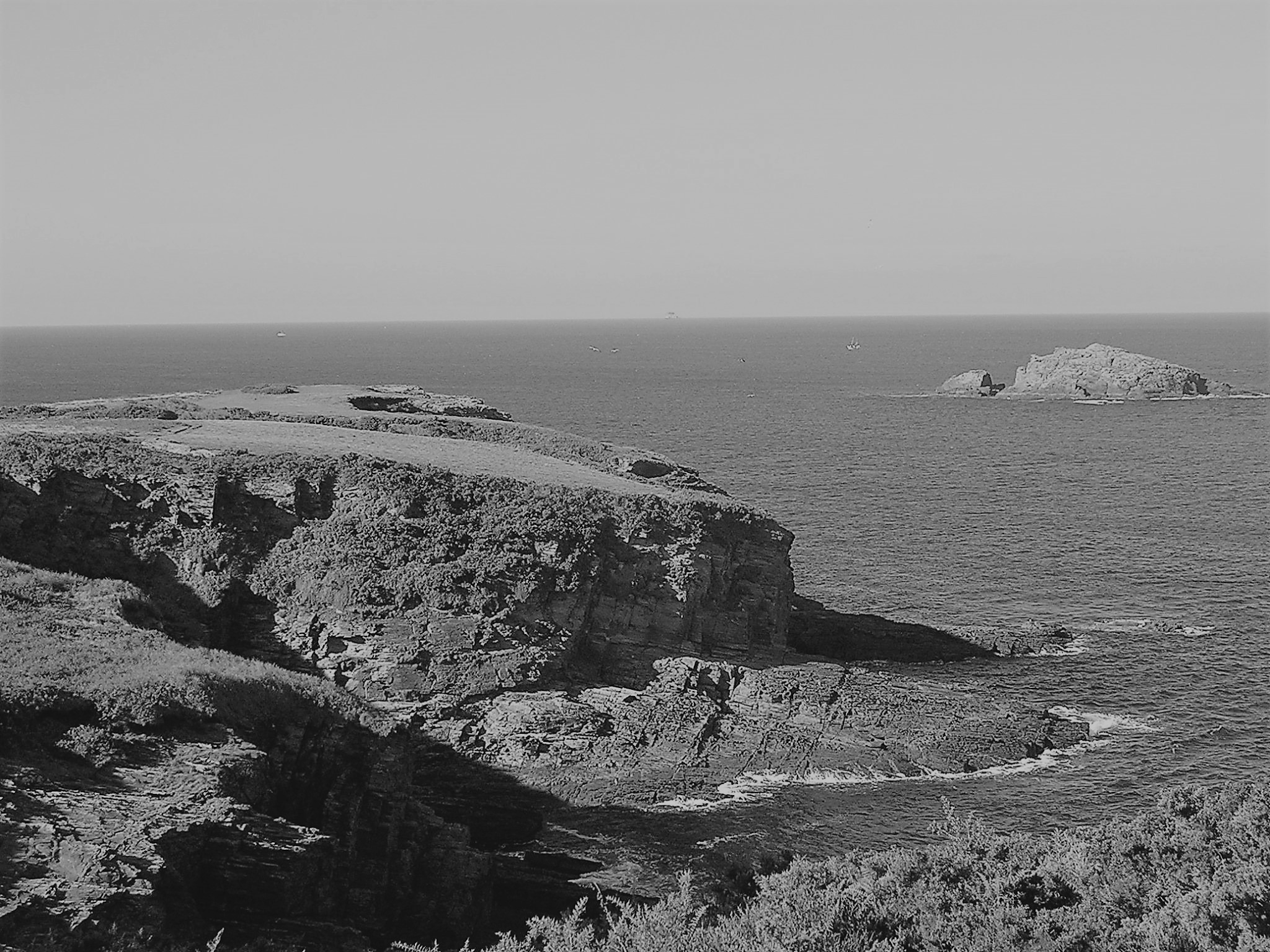 Máis adiante, xa na ribeira, o vento impide o crecemento da masa arbórea dando paso ao toxo, as queiroas e os fieitos. Miña nai, que sempre me dicía que “qué lles ensinas aos turistas, se aquí non hai máis que toxo”, era, a pobre, incapaz de apreciar a fermosa paisaxe que dende aquí se desfruta, xa que non podía borrar da súa memoria a imaxe dos penosos trafegos de ir coller ao monte a louzada para facer esterco que, nas leiras, lles permitirían SOBREVIVIR coas súas colleitas. Con ela fun varias veces recoller as queiroas e o trovisco co que facía o ramo no San Xoán para protexernos das meigas. Algo que sigo facendo, aínda que ela xa non pode, para que SOBREVIVA a súa memoria e parte da nosa cultura. Descoñecía ela a presenza da colonia peninsular máis numerosa de corvo mariño cristado (considerado como vulnerable no Catálogo Galego de Especies Ameazadas), ou a nidificación de falcón peregrino, ou choias biquivermellas. Tampouco sabía da existencia doutras plantas interesantísimas como orquídeas, ou margaridas presentes en poucos lugares do mundo, ou outras pequenas plantas de gran valor que pasan desapercibidas. (Polo que se ve, as autoridades (i)rresponsables da conservación deste espazo tampouco o saben, e permiten así que se realicen neste lugar actividades que repercuten moi negativamente nos valores polos que foi declarado lugar protexido).