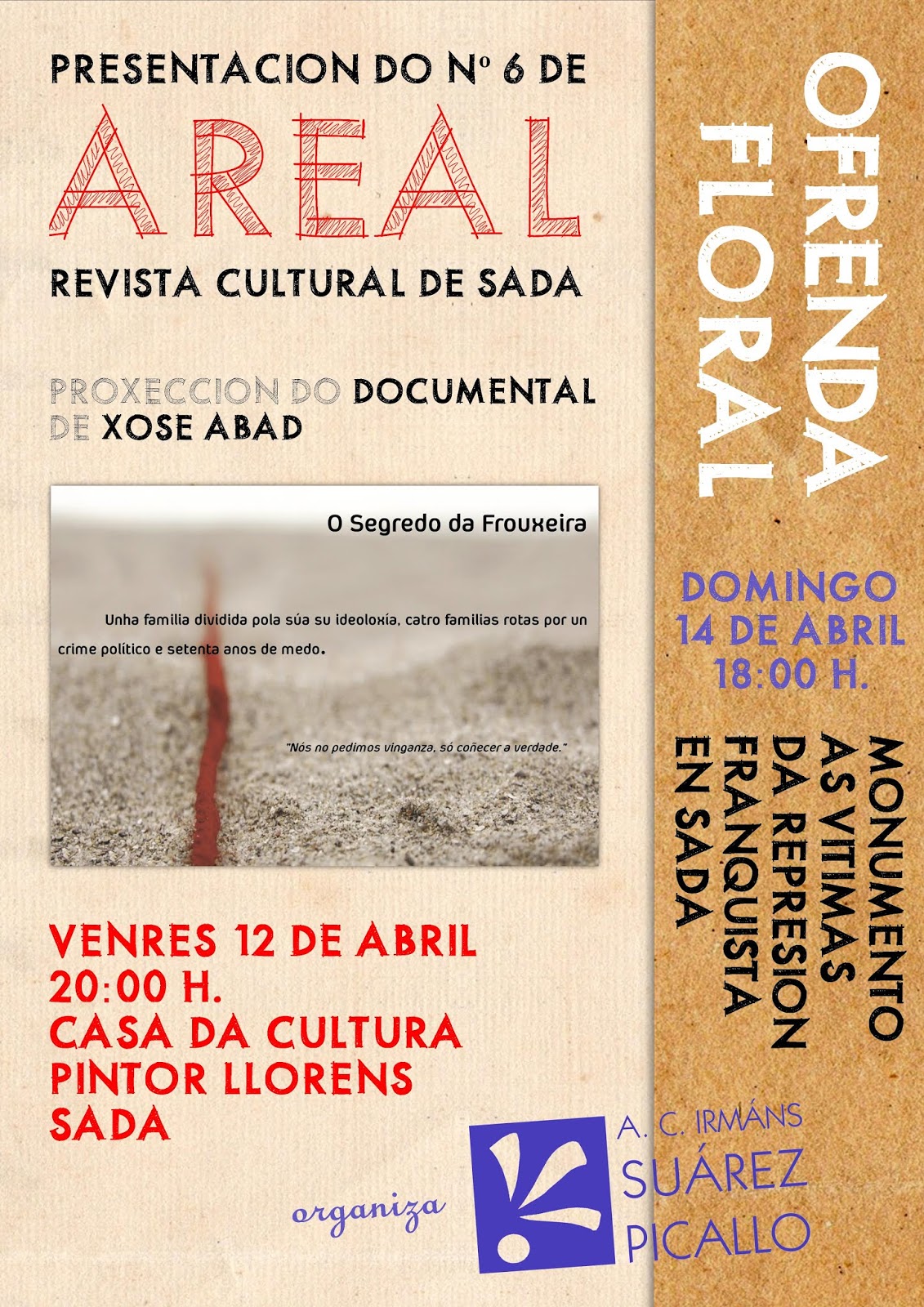 Video resumo do acto de homenaxe que a Asociación Cultural Irmáns Suárez Picallo rinde cada ano con motivo do 14 de abril - Día da República - ás vítimas sadenses da barbarie franquista. Os actos se celebraron como é habitual, ao pé do monumento adicado ás vítimas do franquismo no Paseo Marítimo. (Sada, 14 de abril de 2023).